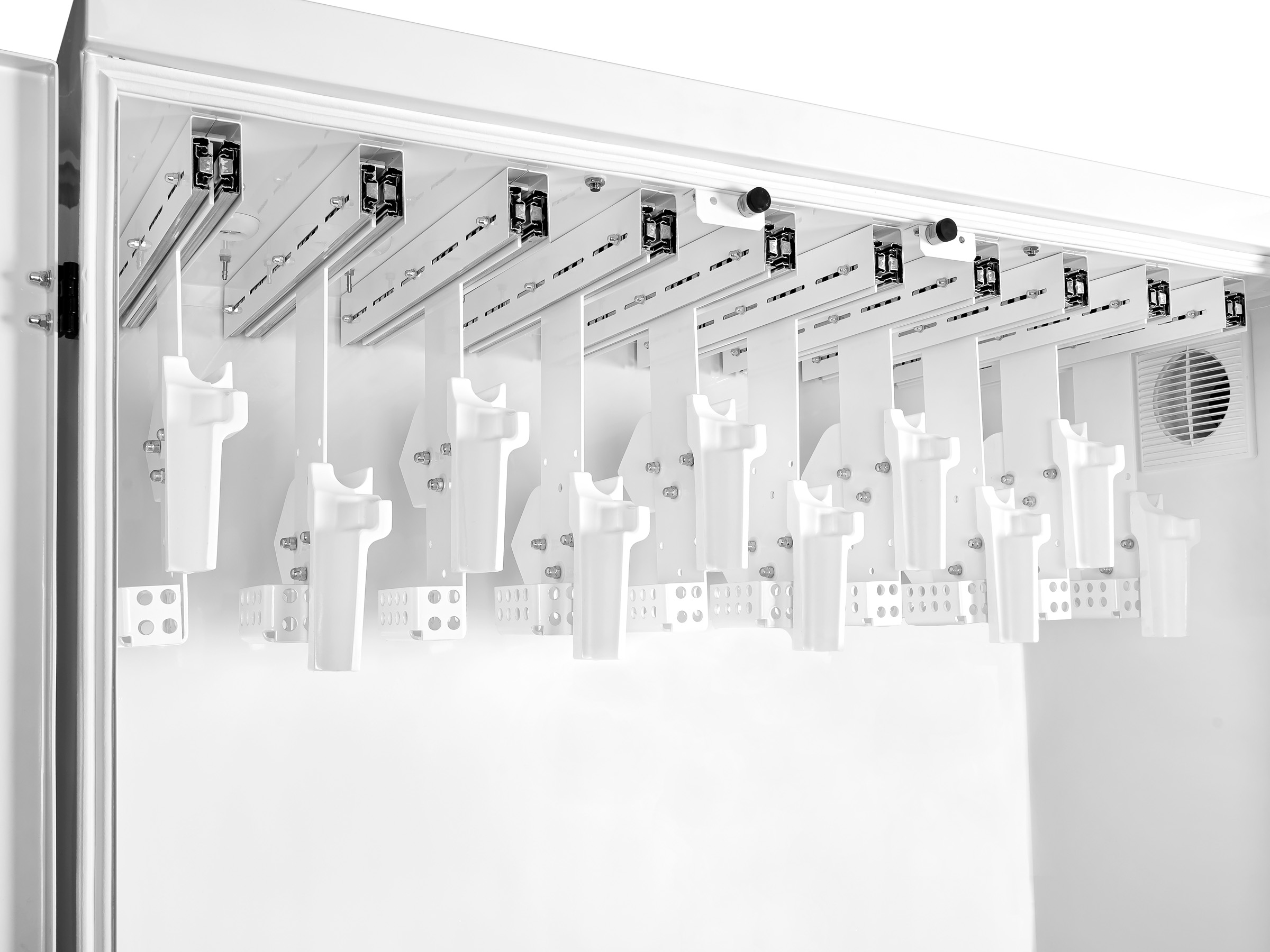 Дверь каждого отсека снабжена замками, запирающимися на ключ. В двери отсека хранения имеется прозрачное окно из тонированного поликарбоната