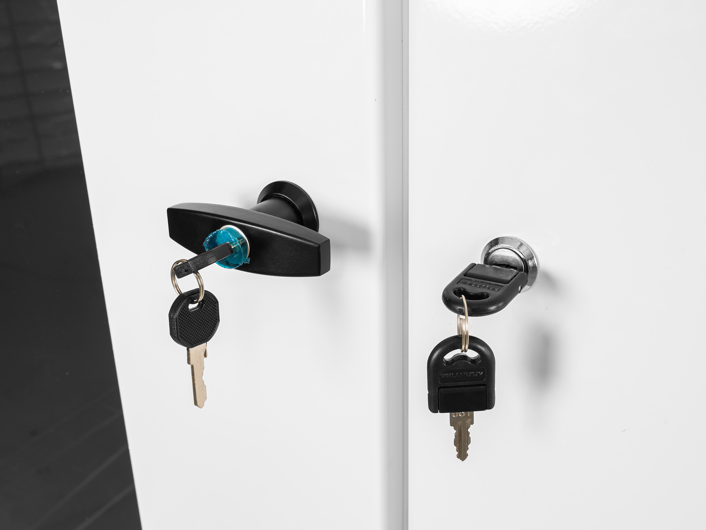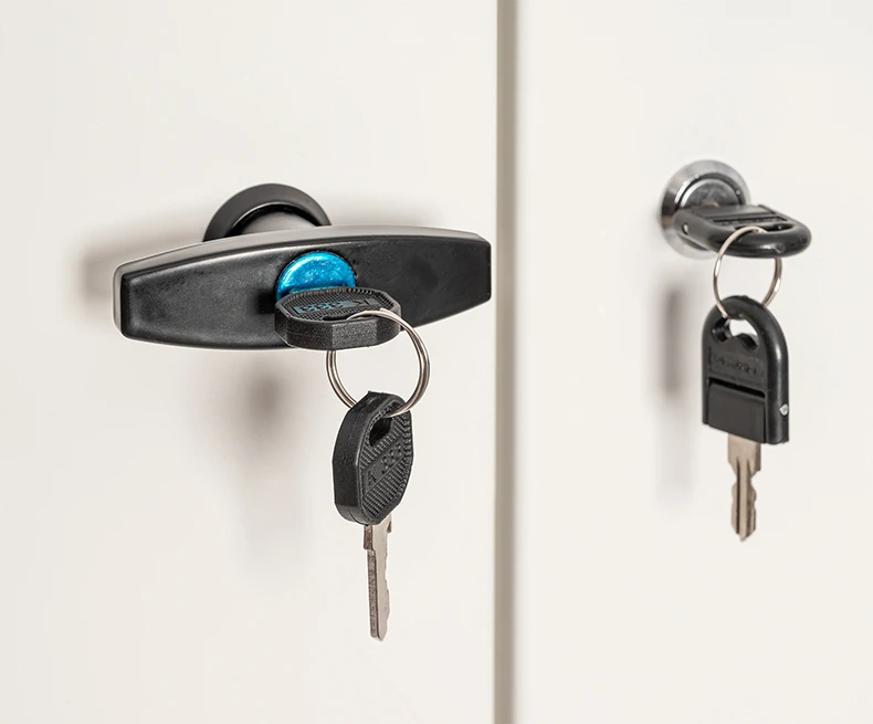 Технический отсек и отсек хранения снабжены замками, запирающимися на ключ. В двери отсека хранения имеется прозрачное окно из тонированного поликарбоната